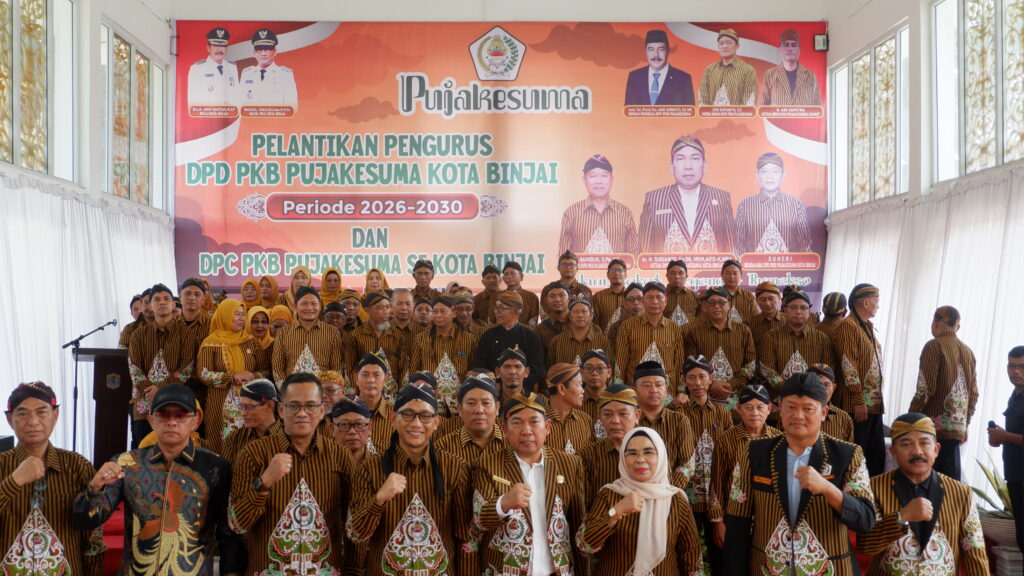 Binjai, Senin (6/4/2026) — Dewan Pimpinan Daerah Perkumpulan Keluarga Besar Pujakesuma (DPD-PKB Pujakesuma) Kota Binjai masa bakti 2026–2030 bersama Dewan Pimpinan Cabang (DPC-PKB Pujakesuma) se-Kota Binjai masa bakti 2025–2028 resmi dilantik dalam sebuah acara khidmat yang digelar di Pendopo Umar Baki, Kota Binjai.