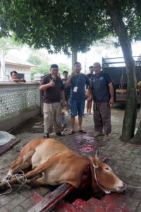Pelaksanaan Sholat Id juga dilanjutkan dengan penyembelihan hewan kurban yang diamanahkan oleh para donatur dan jamaah. Proses penyembelihan dilaksanakan dengan tertib dan sesuai syariat pada 10 dan 11 Dzulhijjah, bertempat di area sekitar masjid. Total hewan kurban yang disembelih tahun ini terdiri dari 8 ekor kambing dan 8 ekor lembu.