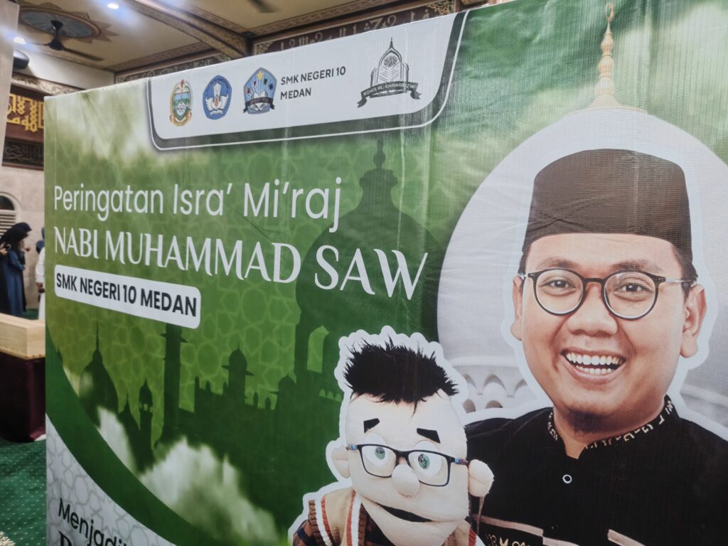 Medan — Dalam rangka memperingati Isra’ Mi’raj Nabi Muhammad SAW, SMK Negeri 10 Medan bersama Baitul Maal ZISWAF (BMZ) menggelar kegiatan Safari Dakwah yang berlangsung di Masjid Al-Jihad, pada Rabu, 4 Februari 2026. Kegiatan ini menghadirkan Ustaz Andi Rahim sebagai penceramah utama dan diikuti oleh ratusan siswa serta tenaga pendidik.
