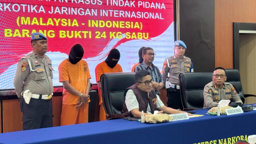 Polda Sulawesi Tengah menggagalkan peredaran 24 kilogram sabu di Palu yang dipasok dari Malaysia. Tiga pelaku berinisial MZ, AM, dan RO ditangkap.