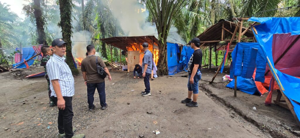 Sebelum meninggal lokasi pengerebekan Tim gabungan TNI – Polri juga membakar dan merobohkan barak-barak narkoba serta judi.