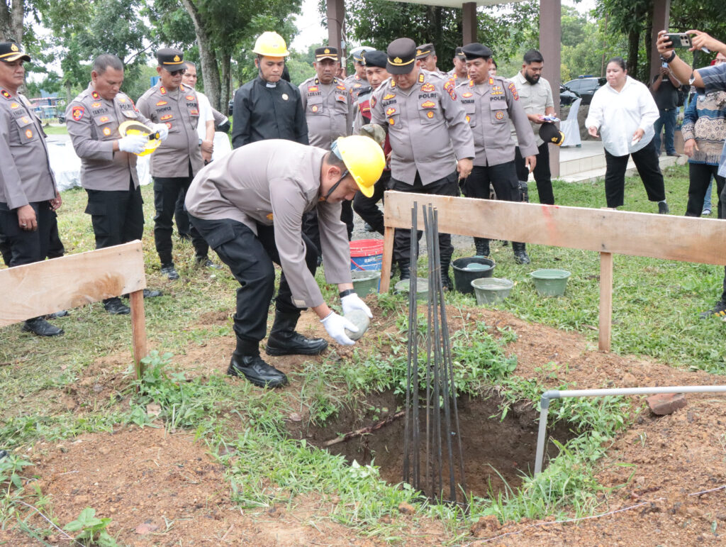 Groundbreaking atau peletakan batu pertama terhadap Gereja Oikumene oleh Kapolres Binjai Akbp Bambang C. Utomo, S.H., S.I.K., M.Si., di lapangan bola bhayangkara jalan Sultan Hasanuddin No.1 Binjai, provinsi Sumatera Utara, Senin (11/8/25) pukul 10.00 wib.