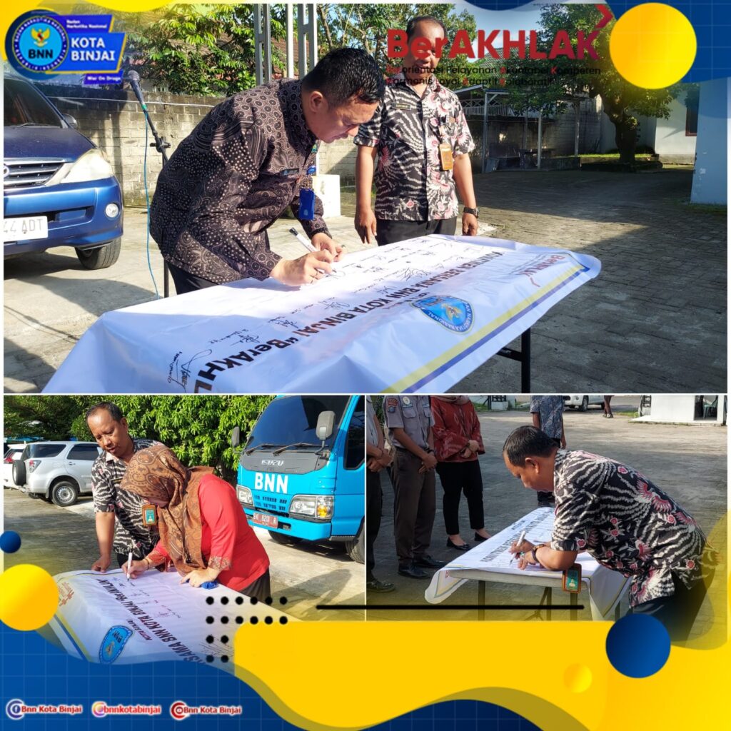 BNN kota Binjai melaksanakan kegiatan penandatanganan komitmen bersama dalam rangka ASN Berakhlak di halaman kantor jalan Gatot Suberoto kelurahan Limau Mungkur kecamatan Binjai Barat, Kamis (17/10/2024) pagi.