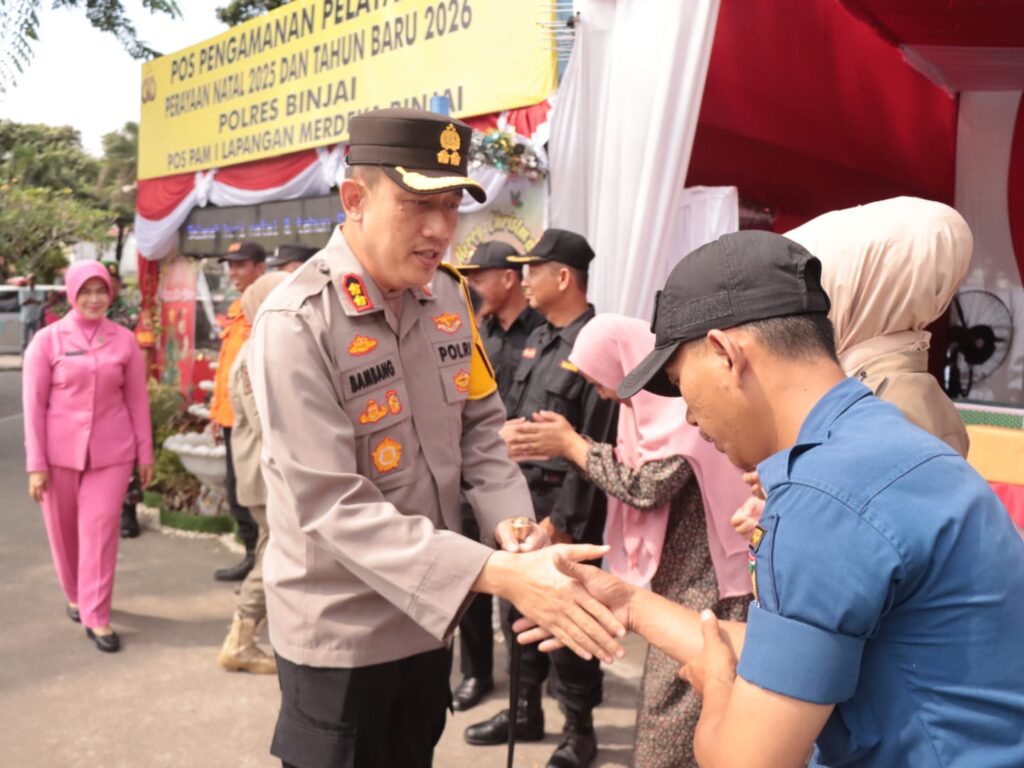 Kapolres Binjai AKBP Bambang c Utomo bersama PJU dan Bhayangkari melaksanakan kunjungan ke pospam dan posyan operasi lilin toba 2025 sekaligus pengecakan kesiapan baik kelengkapan maupun personil yang melaksanakan pengamanan, Rabu (24/12/2025).