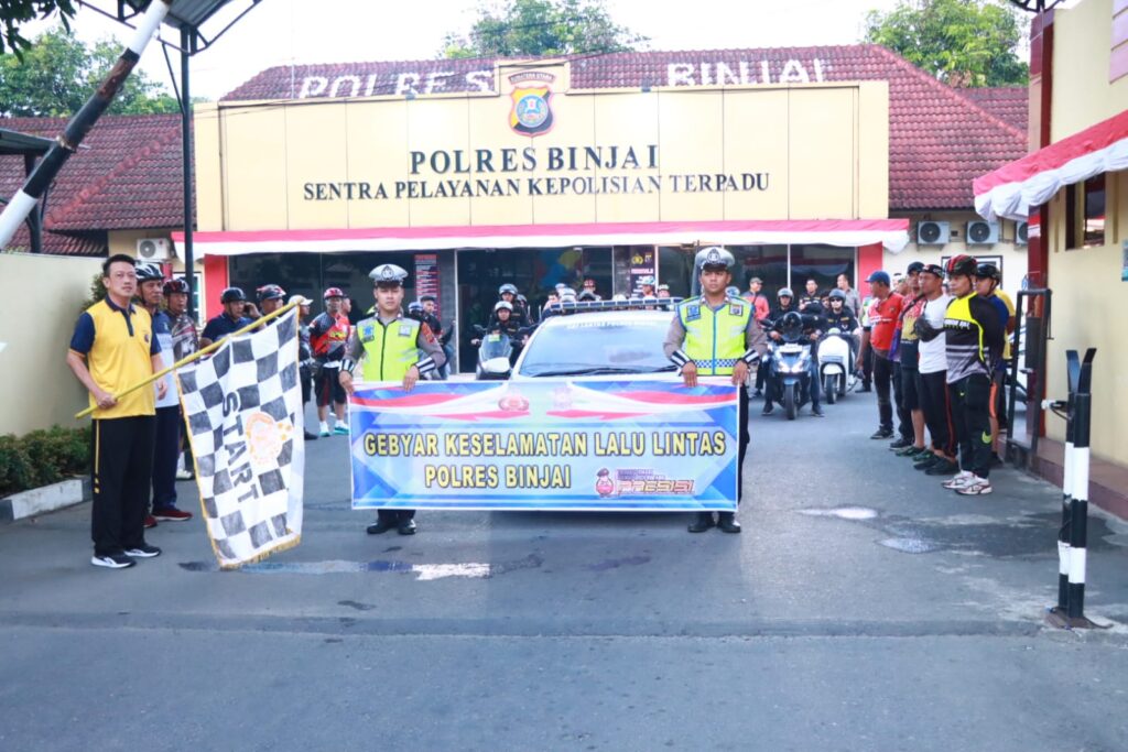 Polres Binjai berangkatkan comunitas sepeda motor sebagai peserta gebyar keselamatan lalu lintas tahun 2024 dari depan markas polres Binjai menuju lapangan astaka Dispora provinsi sumatera utara jalan Wiliam Iskandar No. 9 Medan,