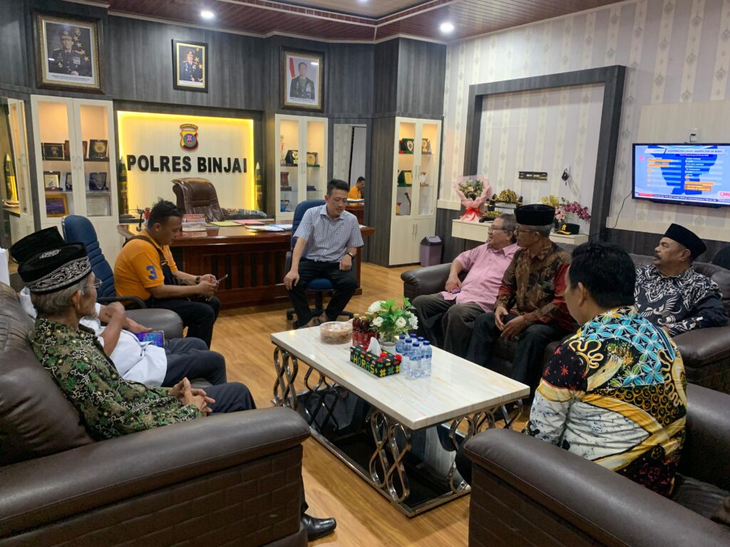 Kapolres Binjai AKBP BAMBANG C. UTOMO, S.H., S.I.K., M.Si, melaksanakan silaturahmi bersama para tokoh etnis kota Binjai di ruangan kerjanya jalan sultan hasanuddin No.1 Binja, kota Binjai provinsi sumatera utara,
