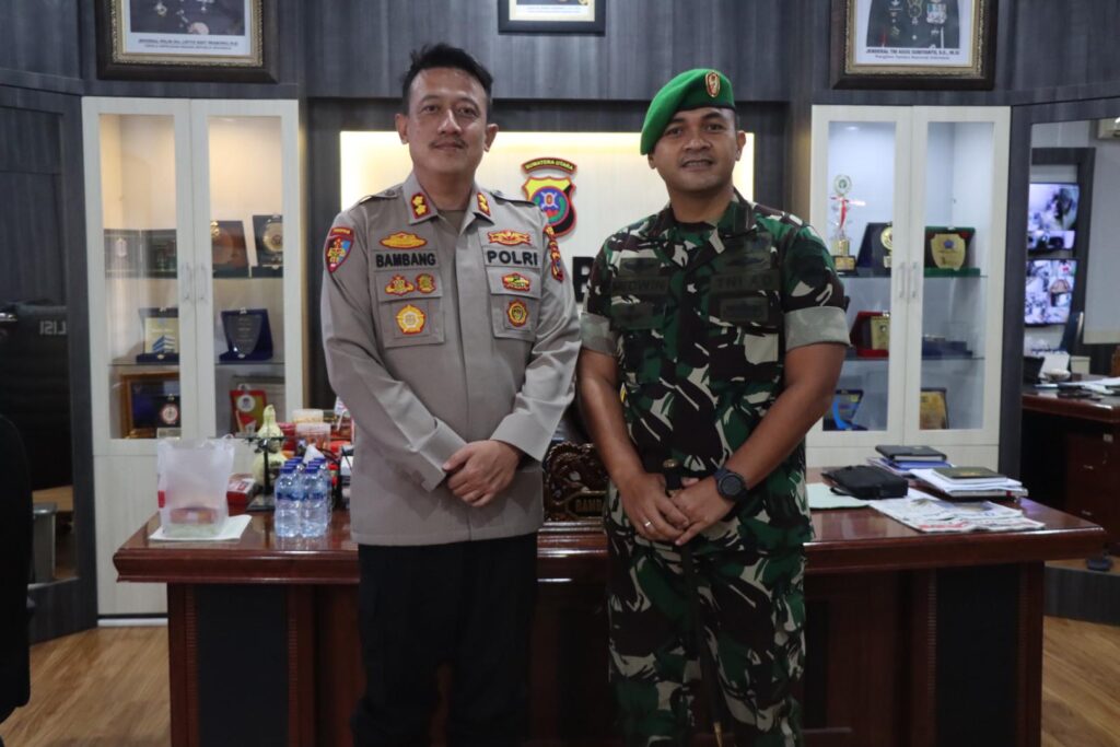 Kapolres Binjai Akbp Bambang C. Utomo, S.H., S.I.K., M.Si., sambut langsung kedatangan Dandim 0203/Langkat Letkol Inf. Medwin Sangkakala, S.Sos, M.Han, ke Polres Binjai, hari Selasa (5/8/25) pukul 11.30 wib.