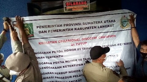 Pemerintah Provinsi Sumatera Utara dan Pemkab Langkat menyegel Diskotik Blue Star di Dusun Banrejo, Desa Kwala Mencirim, Kabupaten Langkat. Sejumlah tim gabungan dari Pemkab Deli Serdang dan Kabupaten Langkat pun turun langsung le lokasi, Senin (10/1).