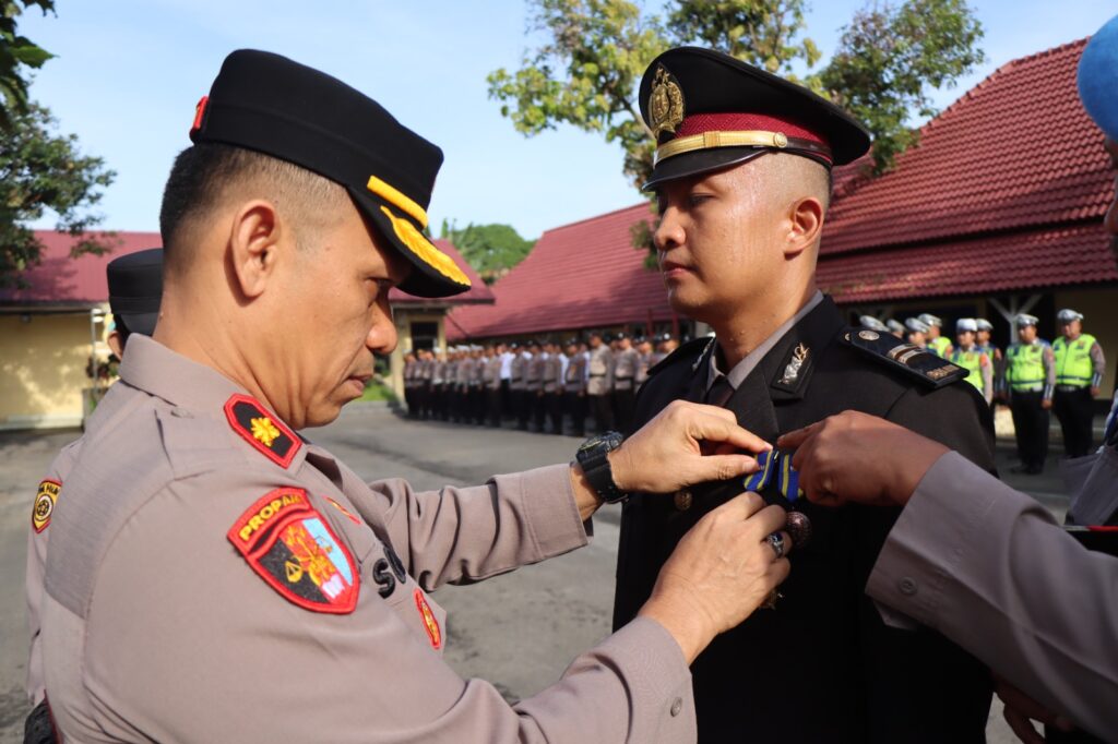 Upacara Pemberian Penghargaan Tanda Kehormatan Satya Lencana Pengabdian Polri kepada personel Polres Binjai di laksanakan di lapangan apel, jalan Sultan Hasanuddin No.1 Binjai, Senin (19/1/26) pukul 08.30 wib.