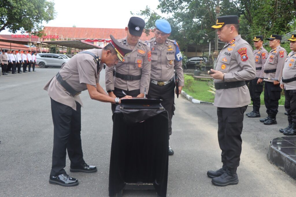 Kapolres Binjai AKBP Mirzal Maulana, S.I.K., S.H., M.M., M.H., memimpin langsung pelaksanaan serah terima jabatan pejabat utama (PJU) polres Binjai. Serah terima jabatan tersebut dilaksanakan di lapangan apel polres Binjai, jalan Sultan Hasanuddin No.1 Binjai kelurahan satria kecamatan Binjai kota, provinsi sumatera utara, Senin (19/1/26) pukul 16.00 wib.
