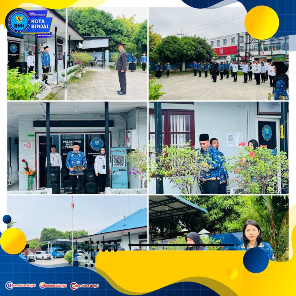 Kepala Badan Narkotika Nasional Kota (BNNK) Binjai menjadi inspektur upacara hari kesaktian Pancasila yang dilaksanakan di halaman kantor BNNK Binjai jalan Gatot Suberoto kelurahan Limau Mungkut kecamatan Binjai Barat, Selasa (1/10/2024).