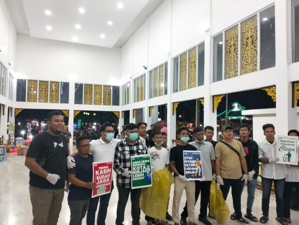 Wakil Walikota Binjai Hasanul Jihadi bersama puluhan anak muda melakukan gerakan aksi pungut sampah sekaligus memberikan edukasi kepada masyarakat pentingnya menjaga kebersihan lingkungan di Lapangan Merdeka Binjai, Sabtu (19/4/2025) malam.