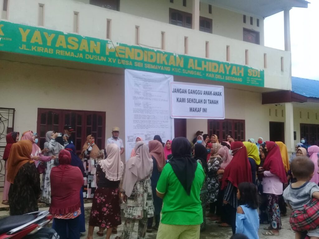 Menurutnya, gedung Yayasan Al – Hidayah berdiri di atas tanah wakaf sesuai dengan ikrar yang diterbitkan oleh Kantor Urusan Agama (KUA) Kecamatan Sunggal, pada tahun 2014 – 2015 lalu.