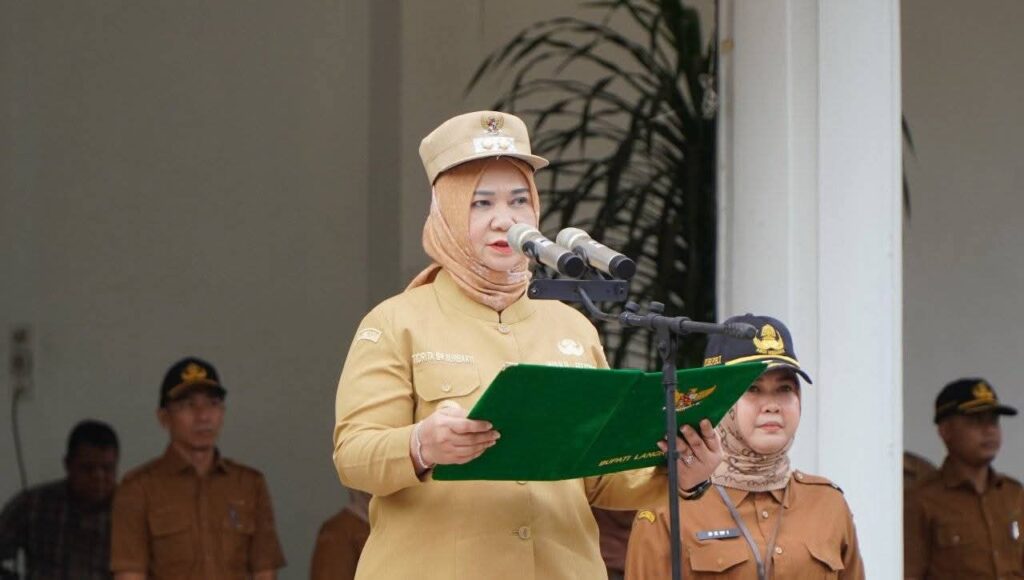 Bupati Langkat H. Syah Afandin, SH yang diwakilkan Wakil Bupati Langkat, Tiorita Br Surbakti, memimpin apel pagi di halaman Kantor Bupati Langkat, Senin (8/9/2025). Apel diikuti Sekretaris Daerah Kabupaten Langkat, para pejabat, serta seluruh Aparatur Sipil Negara (ASN) dan Non ASN di lingkungan Pemkab Langkat.