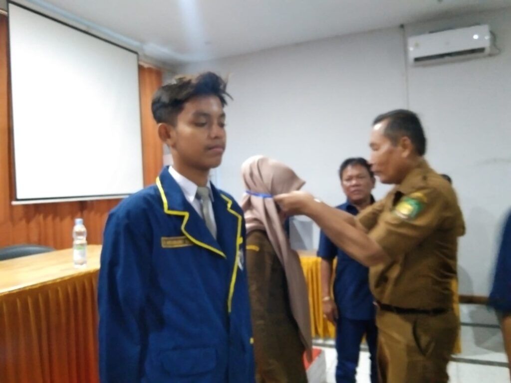 Selanjutnya Penyematan bet peserta oleh Ketua PWI Sumut, Kadis Kominfo kepada peserta sosialisasi dan pelatihan jurnalistik PWI Kabupaten Langkat.