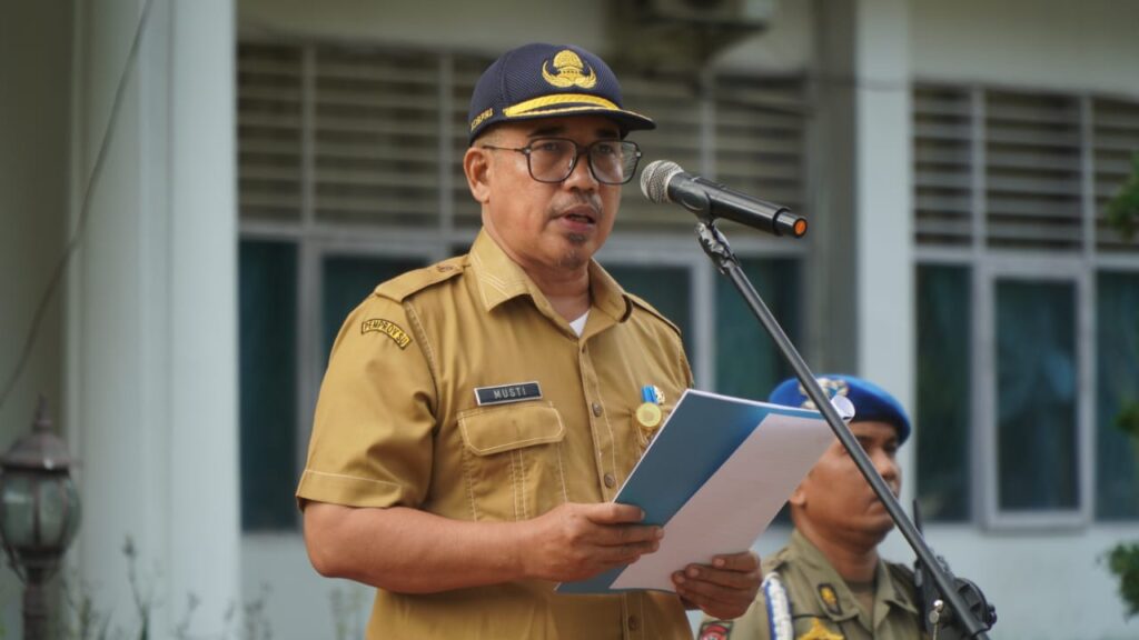 Plt Bupati Langkat H.Syah Afandin SH di wakilkan oleh Asisten Adm Umum Musti Sitepu,SE,M.Si memimpin Apel Gabungan Aparatur Sipil Negara (ASN) di Lingkungan Pemerintah Kabupaten Langkat, bertempat di Halaman Kantor Bupati Langkat, Senin (2/10/2023)