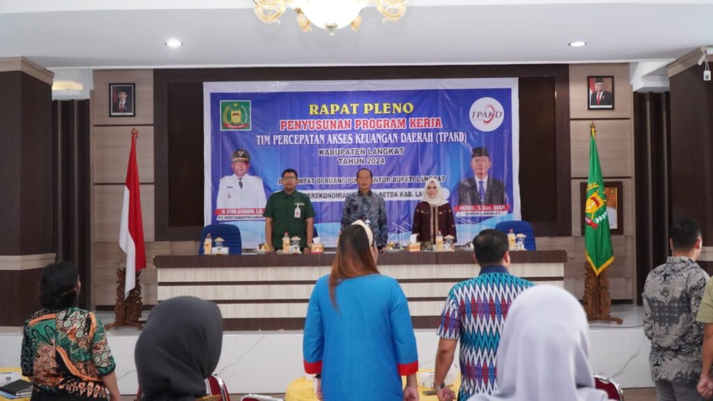 Rapat Pleno menyusun Rencana Program Kerja Tim Percepatan Akses Keuangan Daerah (TPAKD) Kabupaten Langkat 2024 sejalan dengan terbentuknya tim percepatan akses keuangan daerah Kabupaten Langkat Nomor 900.05-62/K/2017 tanggal 03 Agustus 2017 diharapkan dapat menetapkan usulan program kerja TPAKD guna meningkatkan pertumbuhan ekonomi daerah