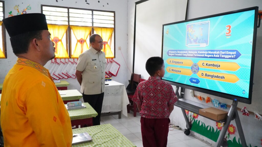 Pada kesempatan itu Pj. Bupati didampingi Kadis Pendidikan DR. H. Saiful Abdi, SH, SE, M.Pd meninjau pembelajaran menggunakan Smartboard sekaligus meninjau menu makanan siang bergizi gratis di SD Negeri 050660 dan SMP N 1 Kec. Binjai. Menu makan siang yang disediakan berupa Telur, tahu dan tempe, sayur dan buah-buahan. Makan siang disediakan oleh pihak sekolah.