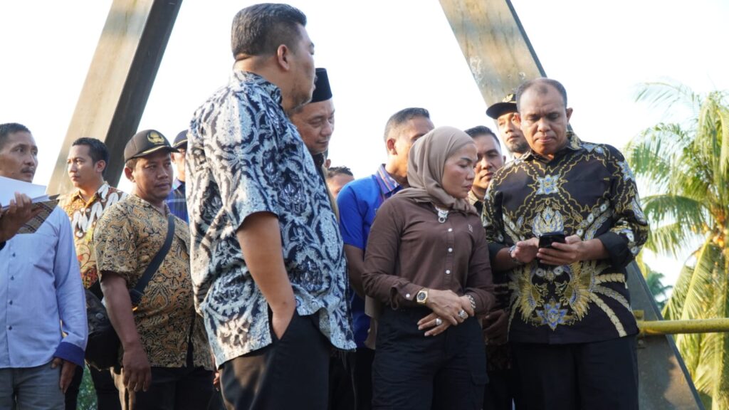 Pj.Bupati Langkat H.M.Faisal Hasrimy, AP,M.AP bersama ketua DPRD Langkat Sribana,SE meninjau langsung jembatan Sei Batang serangan yang roboh beberapa hari lalu. (Kamis, 13/06/2024).