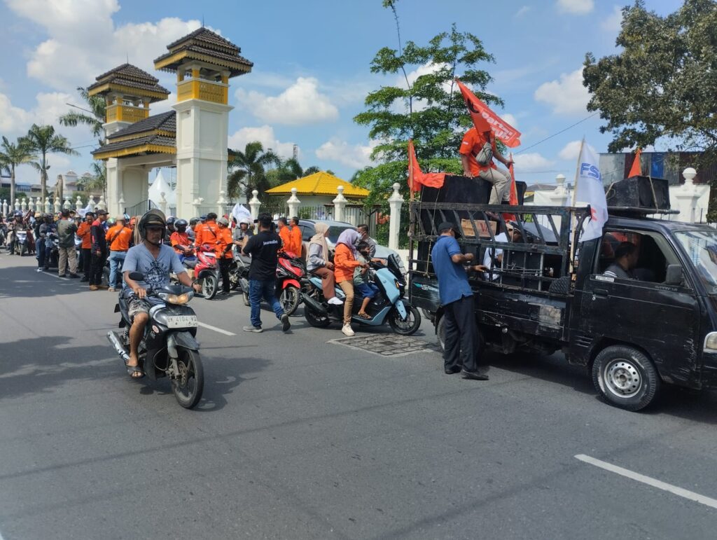 MEDAN-Titikterang | Peringatan Hari Buruh Internasional (May Day) di Kota Medan diwarnai dengan aksi unjuk rasa yang diinisiasi oleh Partai Buruh Sumatera Utara dan beberapa elemen buruh. Ratusan massa yang bertitik kumpul di depan Istana Maimun long march menuju Kantor Gubernur Sumatera Utara di Jalan Pangeran Diponegoro Medan.