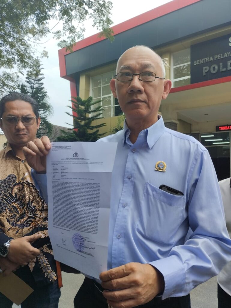 MEDAN- Titikterang | Korban penyerobotan lahan, Budi Priyanto, dan Alimin warga Medan, melaporkan terduga pembuat keterangan palsu, surat dan akta palsu berinisial MH ke Polda Sumut, Rabu (14/5). Laporan itu tertuang dalam Nomor: LP/B/724/V/2025/SPKT/Polda Sumut tanggal 14 Mei 2025.
