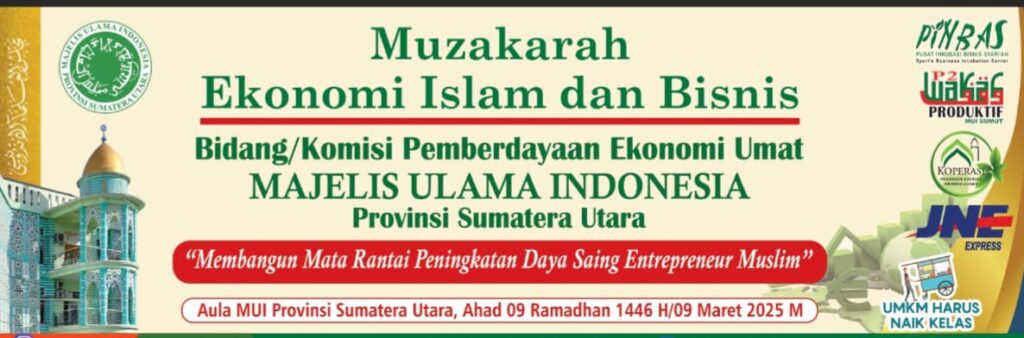 Medan, titikterang-news – Bidang/Komisi Pemberdayaan Ekonomi Umat Majelis Ulama Indonesia (MUI) Provinsi Sumatera Utara menggelar Muzakarah bertema “Membangun Mata Rantai Peningkatan Daya Saing Entrepreneur Muslim” pada Ahad, 09 Ramadhan 1446 H/09 Maret 2025 M. Acara ini diselenggarakan di Aula MUI Provinsi Sumatera Utara, sebagai upaya memperkuat kompetensi pelaku usaha muslim melalui prinsip ekonomi syariah.