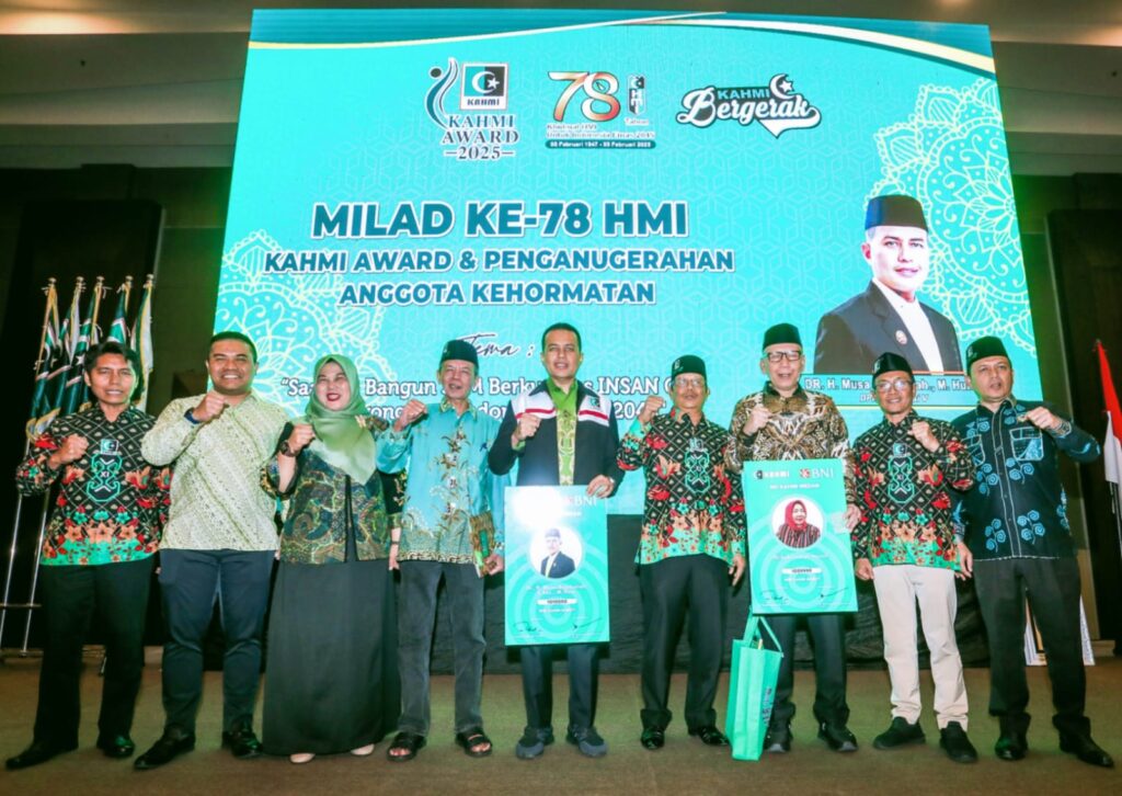 Peringatan Milad ke-78 HMI diselenggarakan Majelis Wilayah KAHMI Sumut, yang dirangkai dengan pemberian KAHMI Award dan anggota kehormatan KAHMI di Hotel Santika Dyandra Medan, Rabu (5/2/2025), berlangsung khidmat dan semarak.
