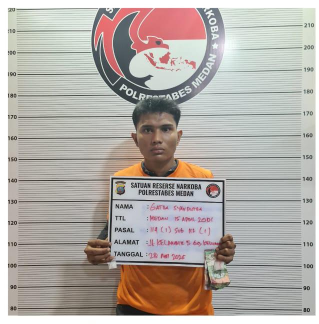 Lebih jauh, berdasarkan laporan dari warga masyarakat tentang adanya pengedar narkotika. Kemudian pada hari Rabu (28/5/2025) sekira pukul 12.00 WIB, Tim melakukan penangkapan tersangka, GS di Jalan Kelambir V Gang Keluarga Kelurahan Lalang Kecamatan Medan Sunggal, tepatnya di depan rumah warga atau tetangga tersangka.