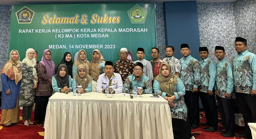 Rapat kerja Kelompok Kerja Kepala Madrasah Aliyah (K3MA) Kota Medan, yang dilaksanakan di Tiara Convention Centre Medan, Selasa (14/11/2023), berhasil menetapkan Anggaran Dasar dan Anggaran Rumah Tangga (AD/ ART) K3MA terdiri dari 9 Bab dan 20 Pasal.
