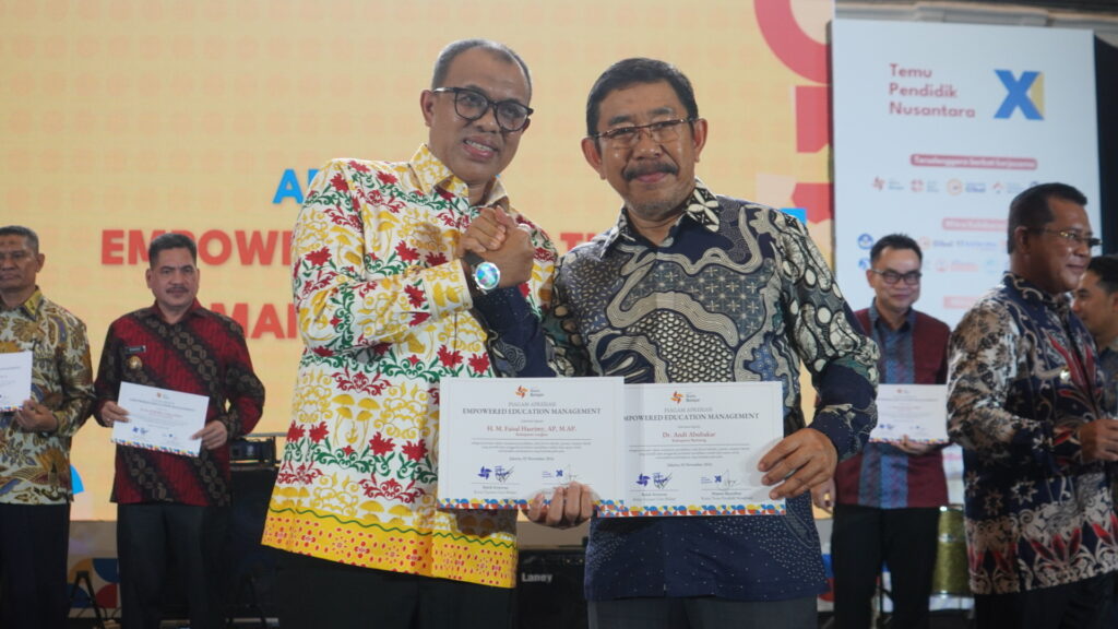 Pj Bupati Langkat, H. M. Faisal Hasrimy, AP., M.AP., menerima penghargaan bergengsi “Mohammad Syafei Awards” dalam ajang Temu Pendidik Nusantara (TPN) XI yang diselenggarakan oleh Yayasan Guru Belajar. Penghargaan ini diberikan atas komitmen Faisal dalam memajukan ekosistem pendidikan di Kabupaten Langkat, khususnya dalam menciptakan pembelajaran yang berpihak pada anak.