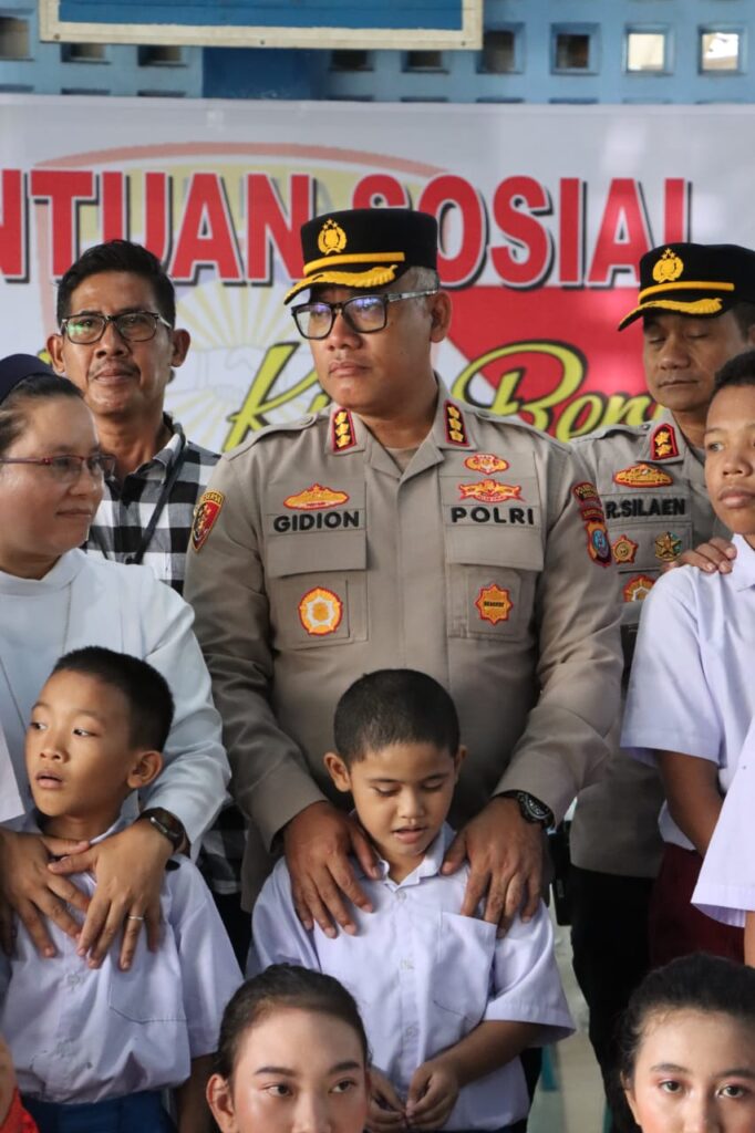 Dalam kesempatan ini, Kombes Gidion yang dikenal humble tersebut memberikan semangat sekaligus motivasi bagi anak-anak di SLB Karya Murni yang memiliki keterbatasan khsusus.