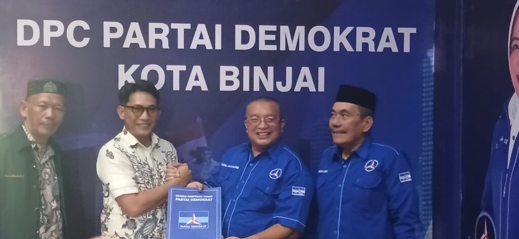 Hasanul Jihadi kembalikan berkas pendaftaran dirinya sebagai bakal calon (Bacalon) Walikota Binjai ke DPC Partai Demokrat, Senin (20/5/2024).
