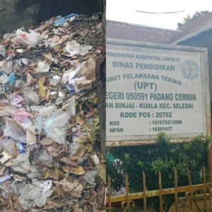 LANGKAT – Titikterang | Sampah plastik dan bekas makanan berserakan di areal SD Negeri 050591...