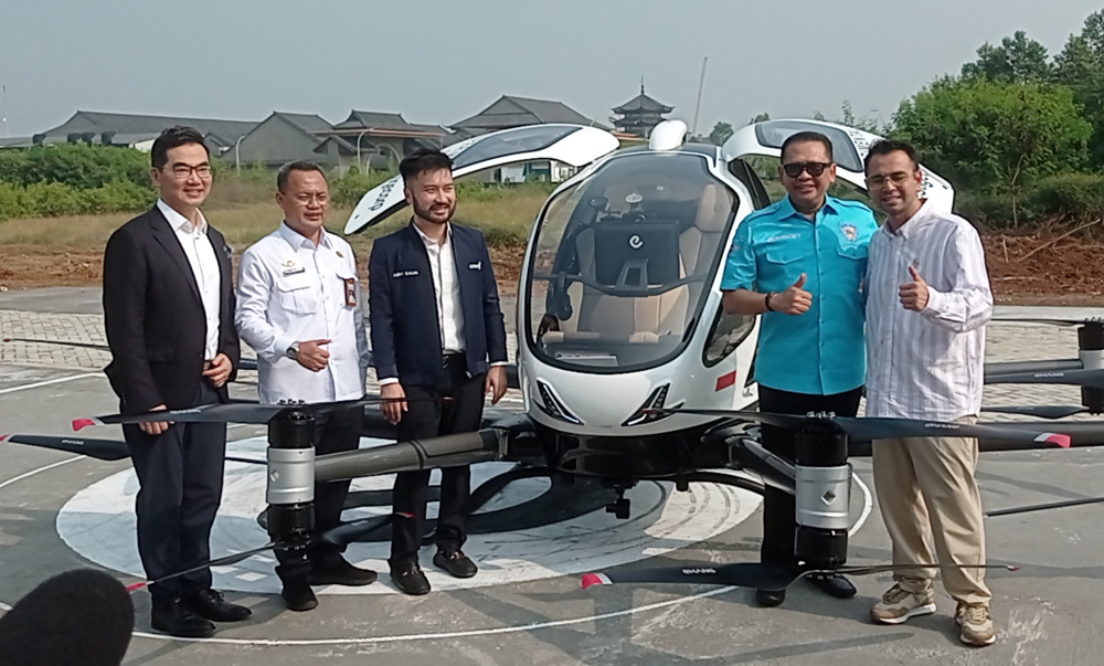EHang 216-S sendiri merupakan Autonomous Aerial Vehicle (AAV) yang digerakkan sepenuhnya dengan tenaga listrik. Kendaraan ini memiliki tinggi 1,77 meter, lebar 5,61 meter, dan mampu membawa dua orang penumpang dengan beban total hingga 220 kilogram. Kendaraan ini dirancang untuk beroperasi secara otonom tanpa pilot di dalam kabin, dan menjadi simbol transformasi Indonesia menuju ekosistem mobilitas udara yang lebih canggih dan ramah lingkungan.